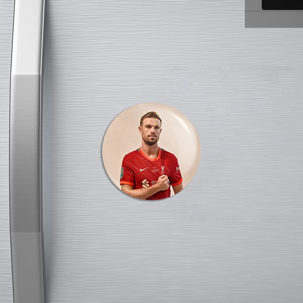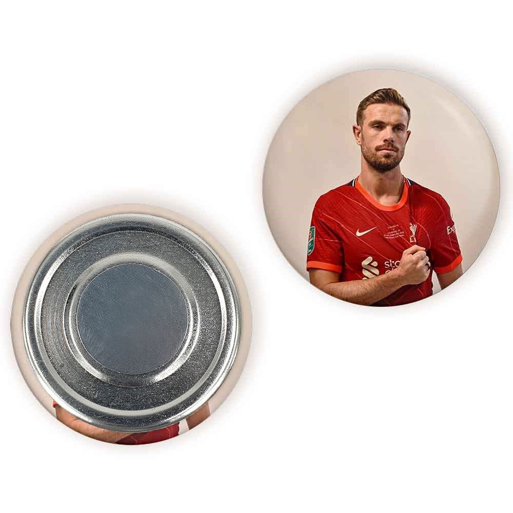 مگنت جردن هندرسون Jordan Henderson خندالو با روکش سلفون مات مخملی ضدخش و قطعه پشتی فلزی تولید شده است که آهنربای اتمی بکار برده شده در محصول، بصورت مخفی تعبیه شده ودیده نمی شود. ضمن اینکه گیرایی بسیار بالایی داشته و به هیچ عنوان از روی یخچال نمی افتد.