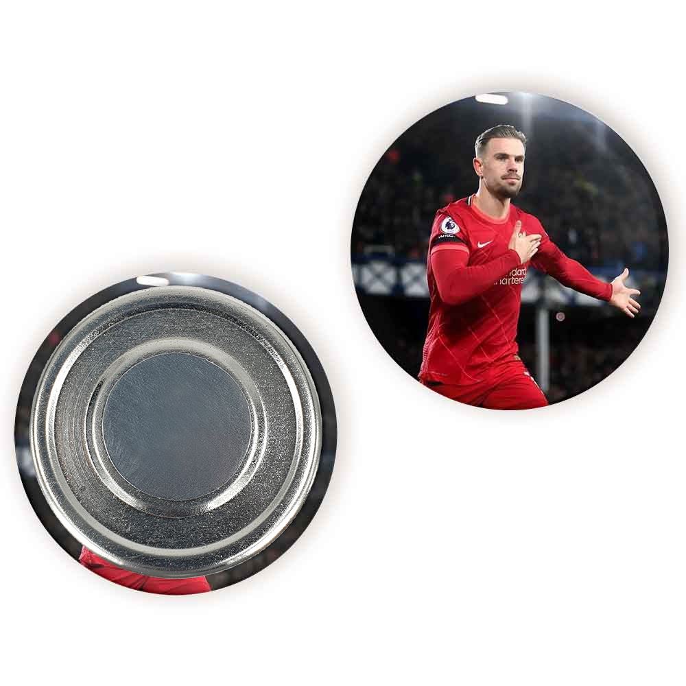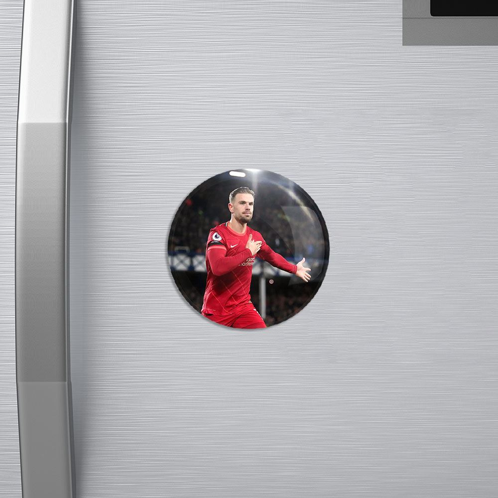 مگنت جردن هندرسون Jordan Henderson خندالو با روکش سلفون مات مخملی ضدخش و قطعه پشتی فلزی تولید شده است که آهنربای اتمی بکار برده شده در محصول، بصورت مخفی تعبیه شده ودیده نمی شود. ضمن اینکه گیرایی بسیار بالایی داشته و به هیچ عنوان از روی یخچال نمی افتد.