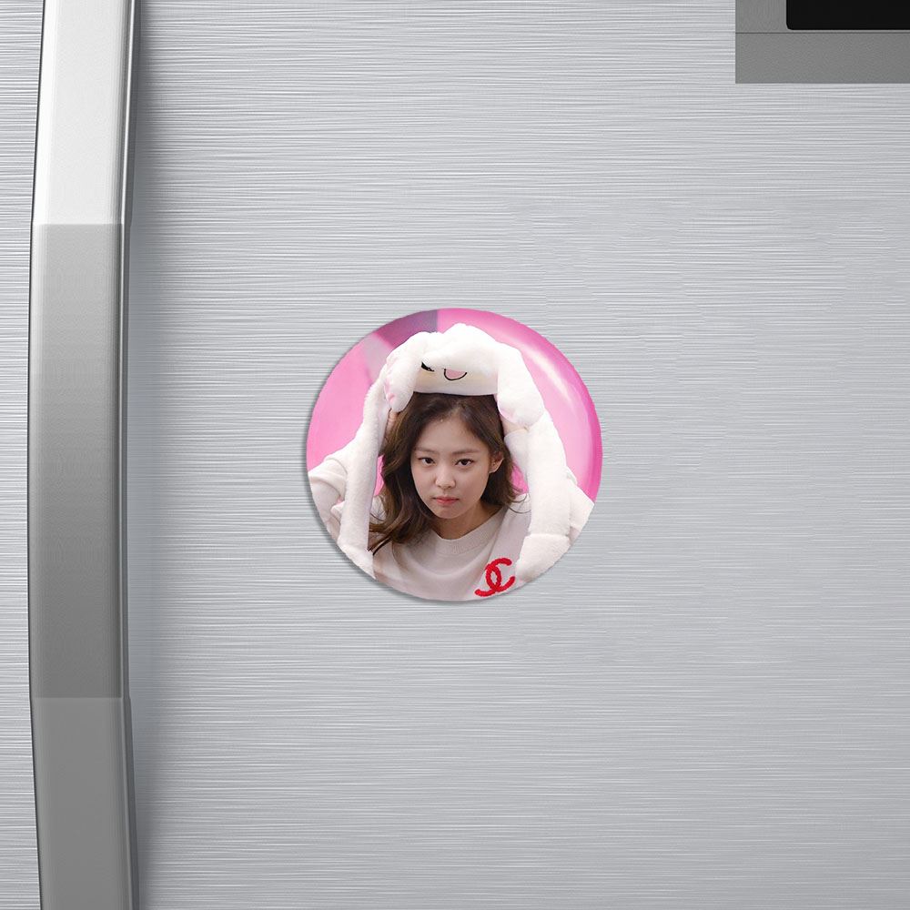 مگنت جنی بلک پینک Black Pink خندالو با روکش سلفون مات مخملی ضدخش و قطعه پشتی فلزی تولید شده است که آهنربای اتمی بکار برده شده در محصول، بصورت مخفی تعبیه شده ودیده نمی شود. ضمن اینکه گیرایی بسیار بالایی داشته و به هیچ عنوان از روی یخچال نمی افتد.