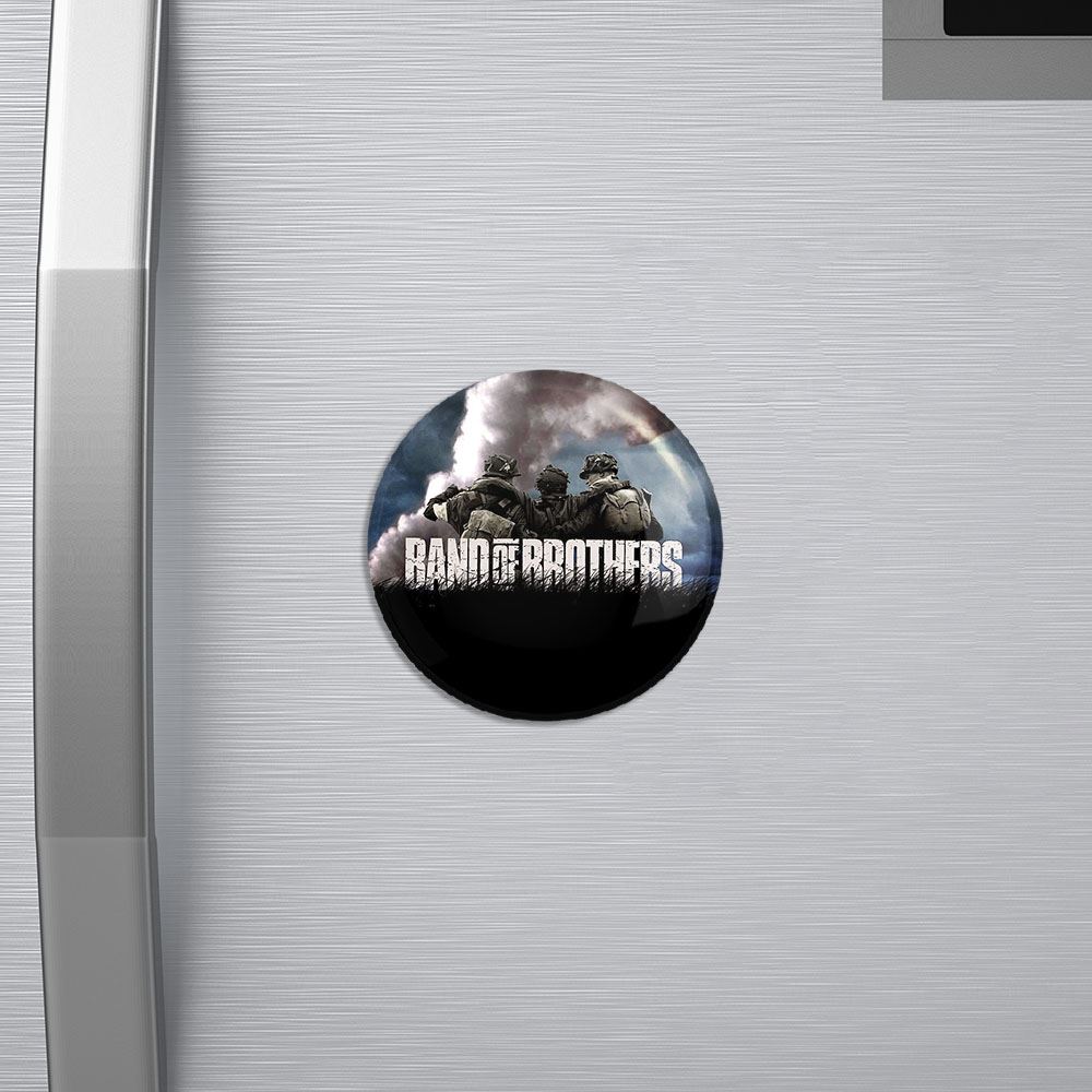 مگنت جوخه برادران Band Of Brothers خندالو با روکش سلفون مات مخملی ضدخش و قطعه پشتی فلزی تولید شده است که آهنربای اتمی بکار برده شده در محصول، بصورت مخفی تعبیه شده ودیده نمی شود. ضمن اینکه گیرایی بسیار بالایی داشته و به هیچ عنوان از روی یخچال نمی افتد.