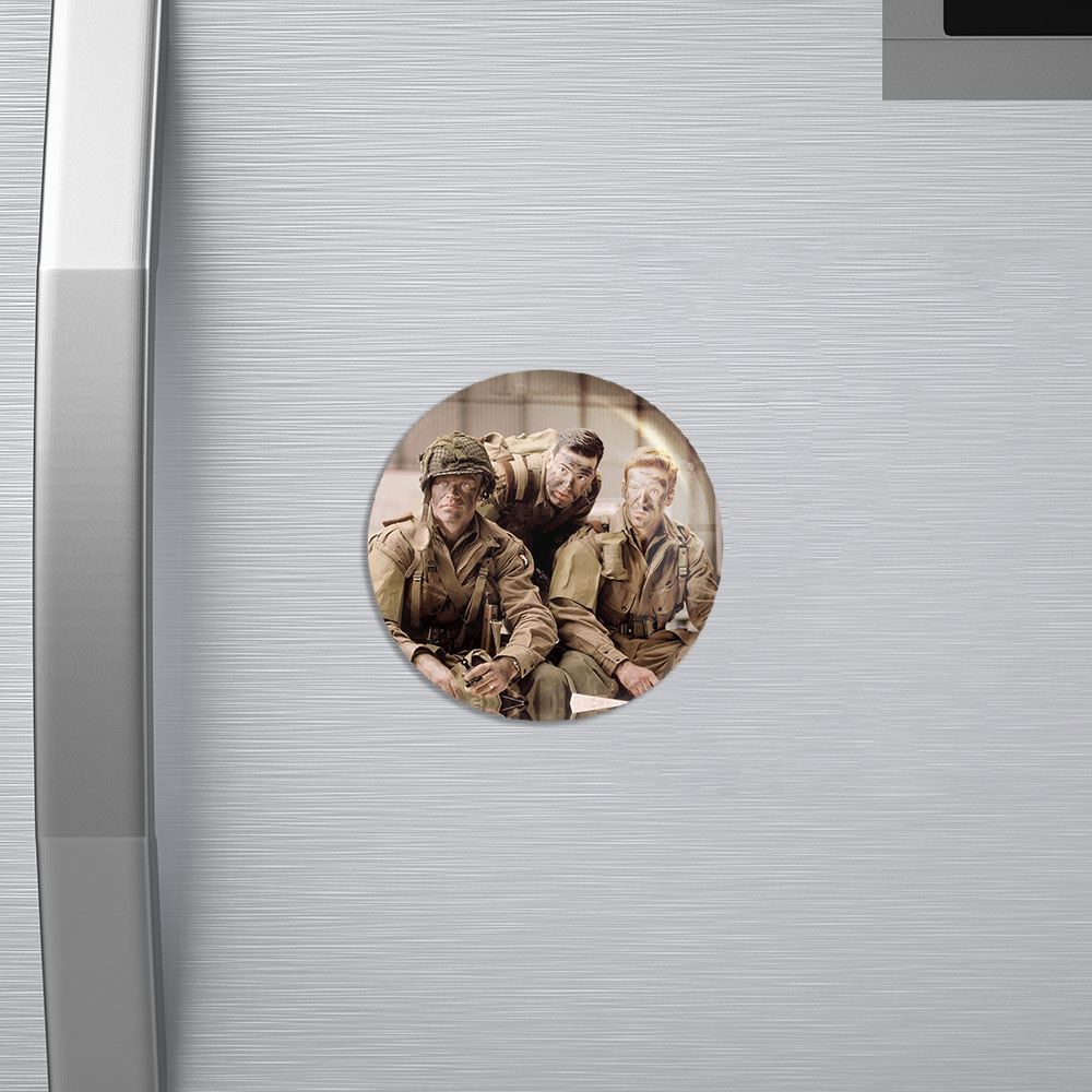 مگنت جوخه برادران Band Of Brothers خندالو با روکش سلفون مات مخملی ضدخش و قطعه پشتی فلزی تولید شده است که آهنربای اتمی بکار برده شده در محصول، بصورت مخفی تعبیه شده ودیده نمی شود. ضمن اینکه گیرایی بسیار بالایی داشته و به هیچ عنوان از روی یخچال نمی افتد.