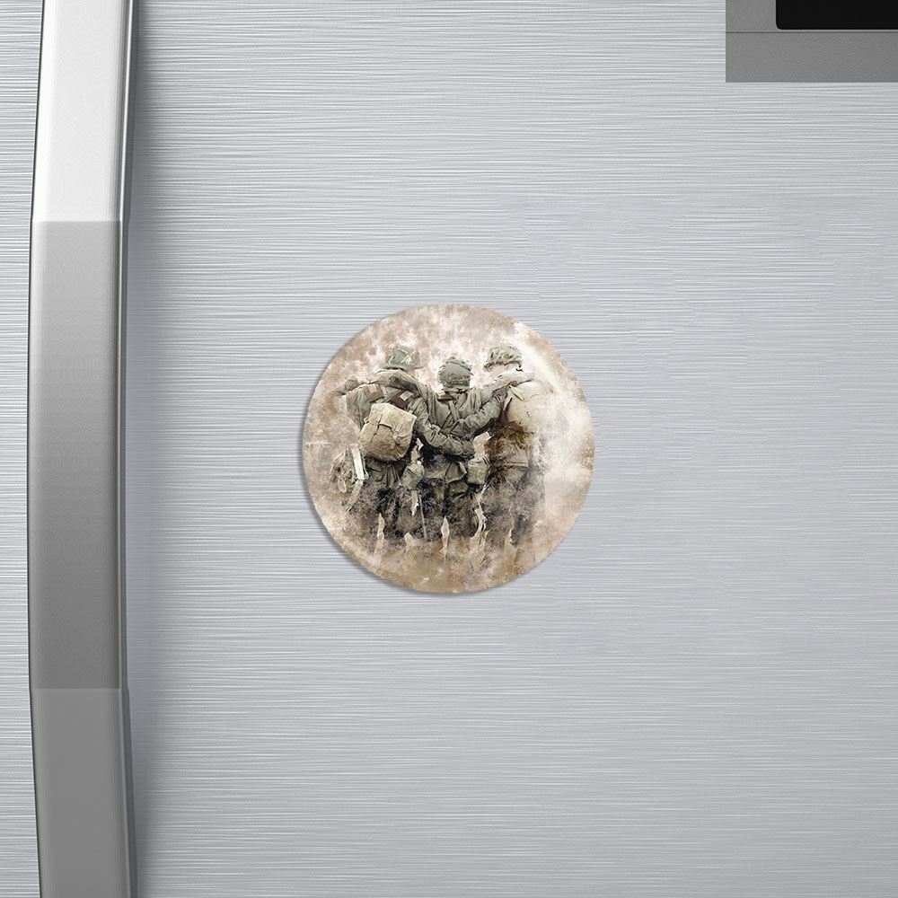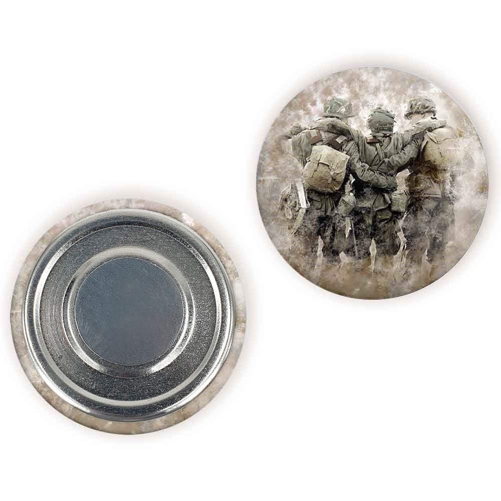 مگنت جوخه برادران Band Of Brothers خندالو با روکش سلفون مات مخملی ضدخش و قطعه پشتی فلزی تولید شده است که آهنربای اتمی بکار برده شده در محصول، بصورت مخفی تعبیه شده ودیده نمی شود. ضمن اینکه گیرایی بسیار بالایی داشته و به هیچ عنوان از روی یخچال نمی افتد.