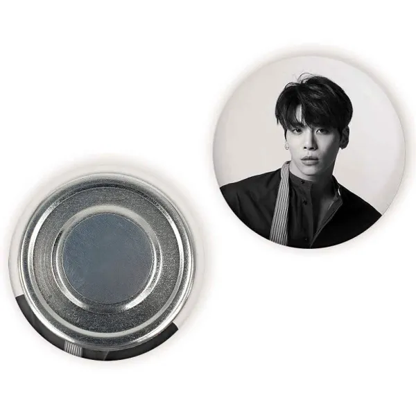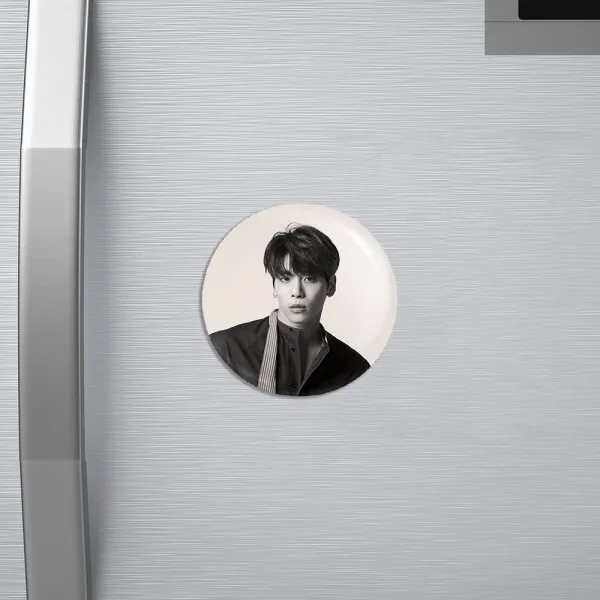 مگنت جونگهیون گروه شاینی Shinee خندالو با روکش سلفون مات مخملی ضدخش و قطعه پشتی فلزی تولید شده است که آهنربای اتمی بکار برده شده در محصول، بصورت مخفی تعبیه شده ودیده نمی شود. ضمن اینکه گیرایی بسیار بالایی داشته و به هیچ عنوان از روی یخچال نمی افتد.