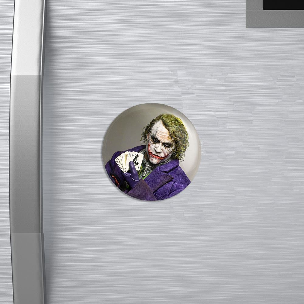 مگنت جوکر Joker خندالو با روکش سلفون مات مخملی ضدخش و قطعه پشتی فلزی تولید شده است که آهنربای اتمی بکار برده شده در محصول، بصورت مخفی تعبیه شده ودیده نمی شود. ضمن اینکه گیرایی بسیار بالایی داشته و به هیچ عنوان از روی یخچال نمی افتد.