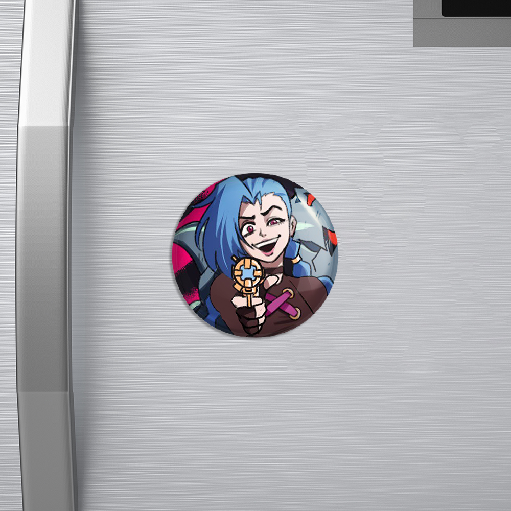 مگنت جینکس آرکین (Arcane) خندالو با روکش سلفون مات مخملی ضدخش و قطعه پشتی فلزی تولید شده است که آهنربای اتمی بکار برده شده در محصول، بصورت مخفی تعبیه شده ودیده نمی شود. ضمن اینکه گیرایی بسیار بالایی داشته و به هیچ عنوان از روی یخچال نمی افتد.