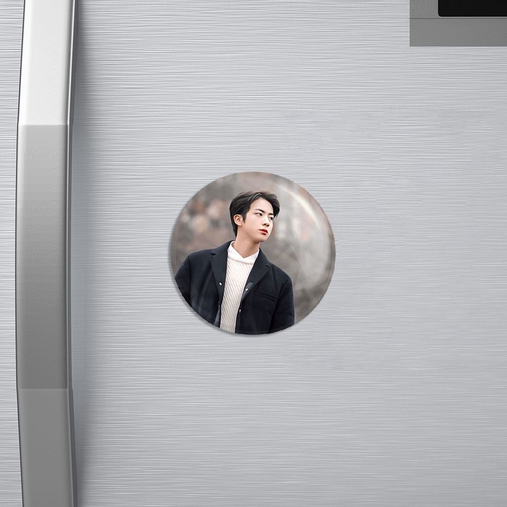 مگنت جین Jin گروه بی تی اس BTS خندالو با روکش سلفون مات مخملی ضدخش و قطعه پشتی فلزی تولید شده است که آهنربای اتمی بکار برده شده در محصول، بصورت مخفی تعبیه شده ودیده نمی شود. ضمن اینکه گیرایی بسیار بالایی داشته و به هیچ عنوان از روی یخچال نمی افتد.