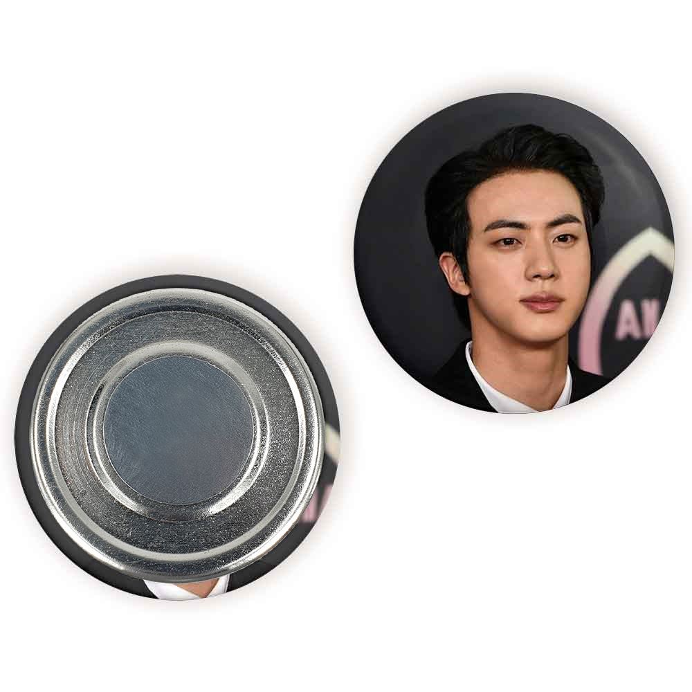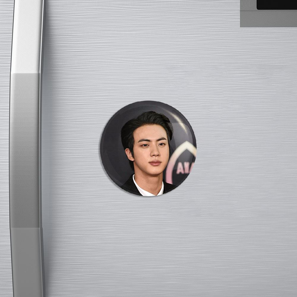 مگنت جین Jin گروه بی تی اس BTS خندالو با روکش سلفون مات مخملی ضدخش و قطعه پشتی فلزی تولید شده است که آهنربای اتمی بکار برده شده در محصول، بصورت مخفی تعبیه شده ودیده نمی شود. ضمن اینکه گیرایی بسیار بالایی داشته و به هیچ عنوان از روی یخچال نمی افتد.