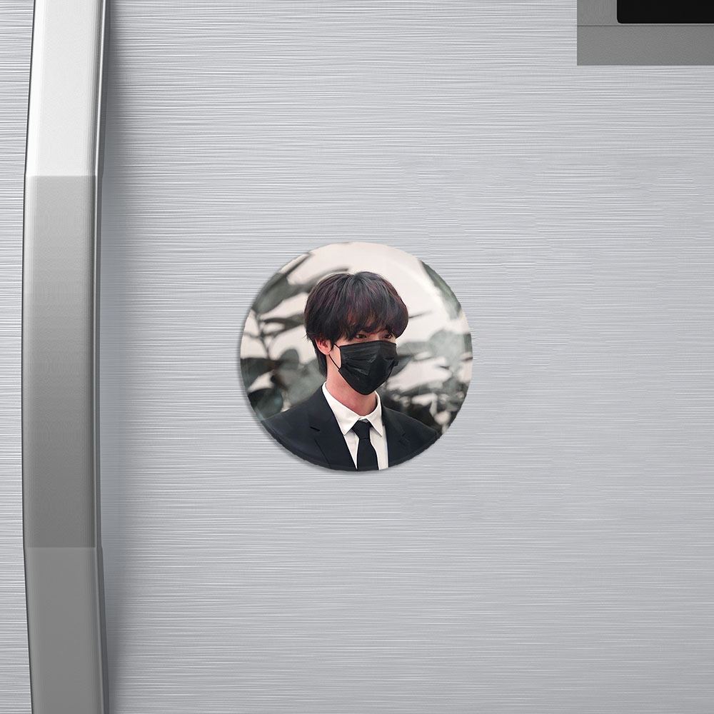 مگنت جین Jin گروه بی تی اس BTS خندالو با روکش سلفون مات مخملی ضدخش و قطعه پشتی فلزی تولید شده است که آهنربای اتمی بکار برده شده در محصول، بصورت مخفی تعبیه شده ودیده نمی شود. ضمن اینکه گیرایی بسیار بالایی داشته و به هیچ عنوان از روی یخچال نمی افتد.