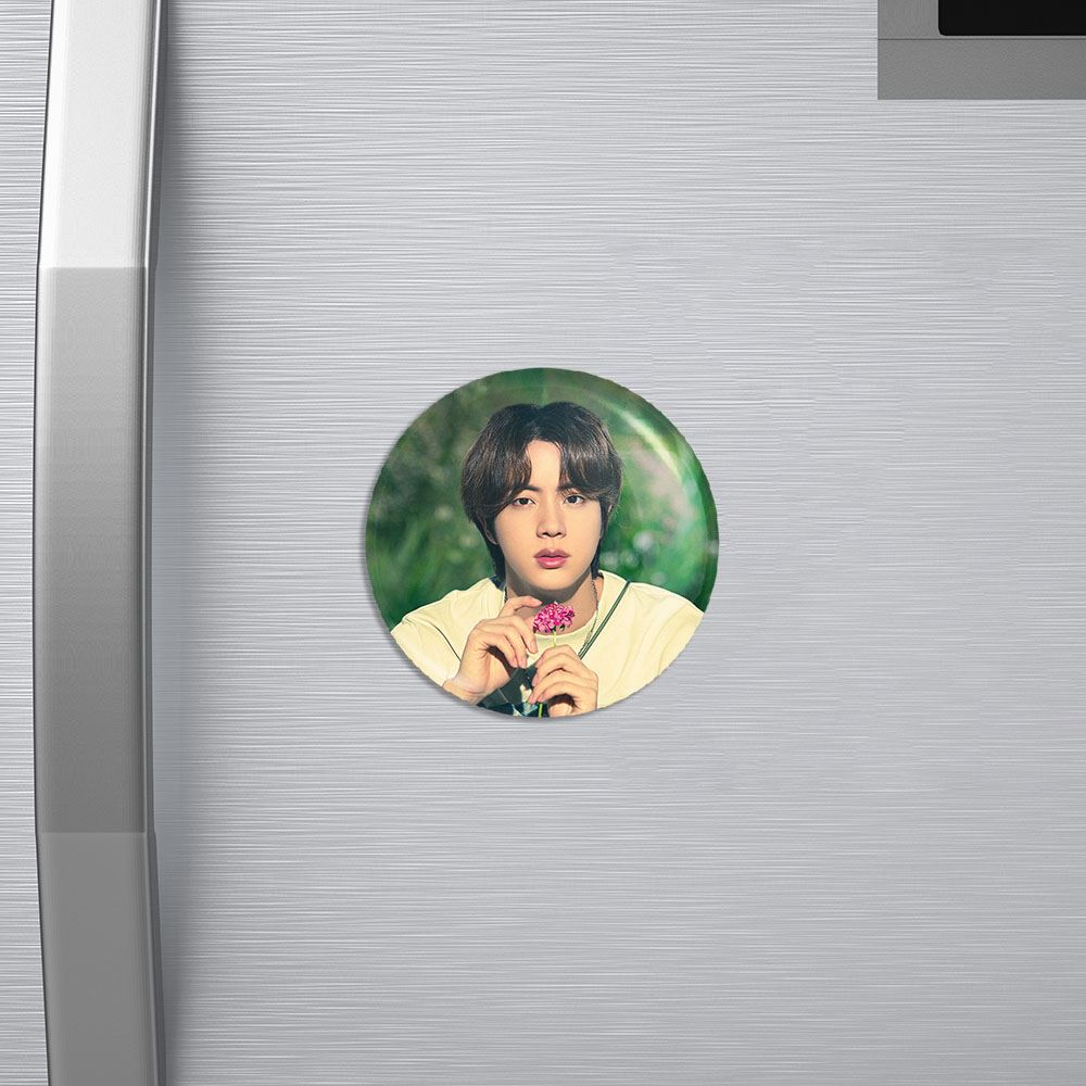 مگنت جین Jin گروه بی تی اس BTS خندالو با روکش سلفون مات مخملی ضدخش و قطعه پشتی فلزی تولید شده است که آهنربای اتمی بکار برده شده در محصول، بصورت مخفی تعبیه شده ودیده نمی شود. ضمن اینکه گیرایی بسیار بالایی داشته و به هیچ عنوان از روی یخچال نمی افتد.
