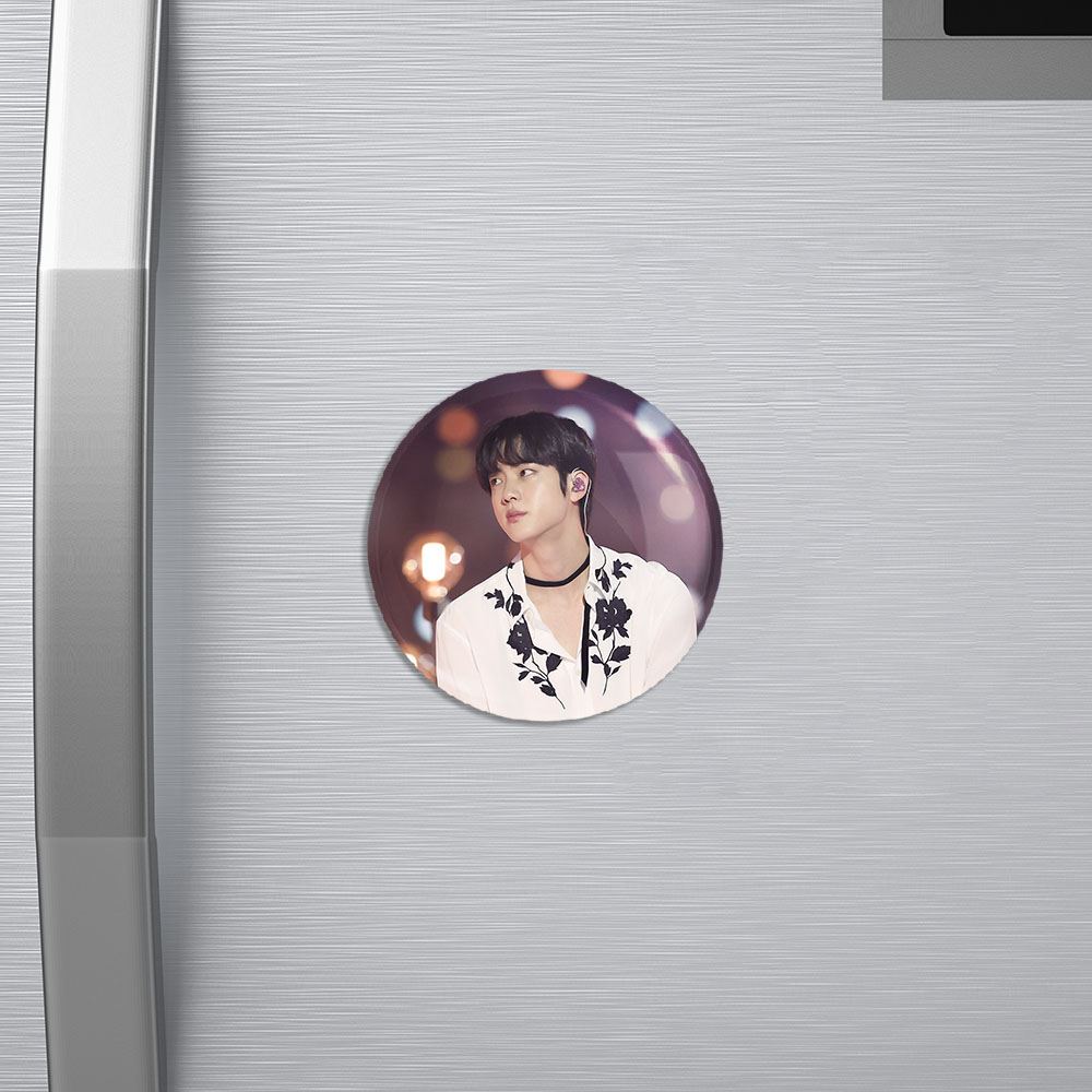 مگنت جین Jin گروه بی تی اس BTS خندالو با روکش سلفون مات مخملی ضدخش و قطعه پشتی فلزی تولید شده است که آهنربای اتمی بکار برده شده در محصول، بصورت مخفی تعبیه شده ودیده نمی شود. ضمن اینکه گیرایی بسیار بالایی داشته و به هیچ عنوان از روی یخچال نمی افتد.