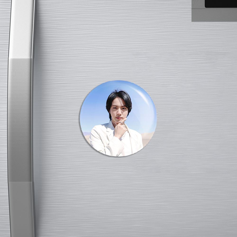 مگنت جین Jin گروه بی تی اس BTS خندالو با روکش سلفون مات مخملی ضدخش و قطعه پشتی فلزی تولید شده است که آهنربای اتمی بکار برده شده در محصول، بصورت مخفی تعبیه شده ودیده نمی شود. ضمن اینکه گیرایی بسیار بالایی داشته و به هیچ عنوان از روی یخچال نمی افتد.