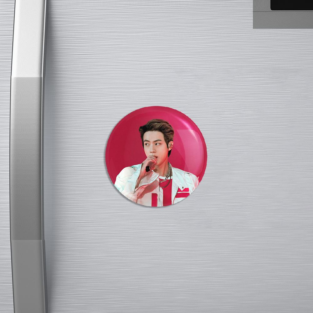 مگنت جین Jin گروه بی تی اس BTS خندالو با روکش سلفون مات مخملی ضدخش و قطعه پشتی فلزی تولید شده است که آهنربای اتمی بکار برده شده در محصول، بصورت مخفی تعبیه شده ودیده نمی شود. ضمن اینکه گیرایی بسیار بالایی داشته و به هیچ عنوان از روی یخچال نمی افتد.