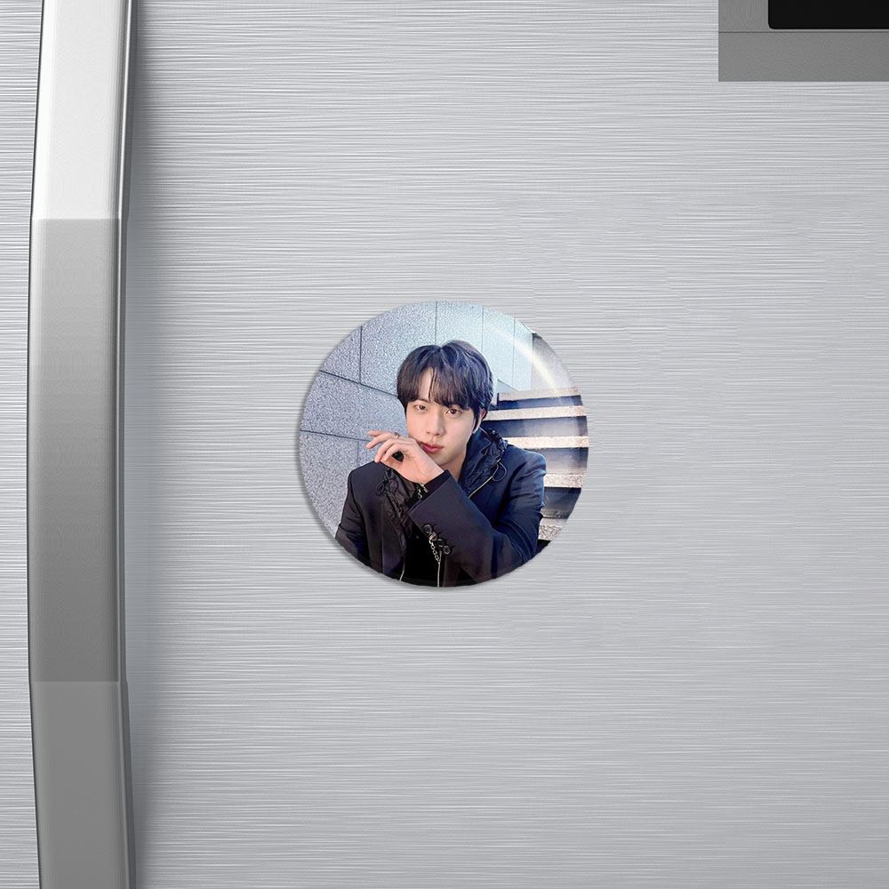 مگنت جین Jin گروه بی تی اس BTS خندالو با روکش سلفون مات مخملی ضدخش و قطعه پشتی فلزی تولید شده است که آهنربای اتمی بکار برده شده در محصول، بصورت مخفی تعبیه شده ودیده نمی شود. ضمن اینکه گیرایی بسیار بالایی داشته و به هیچ عنوان از روی یخچال نمی افتد.