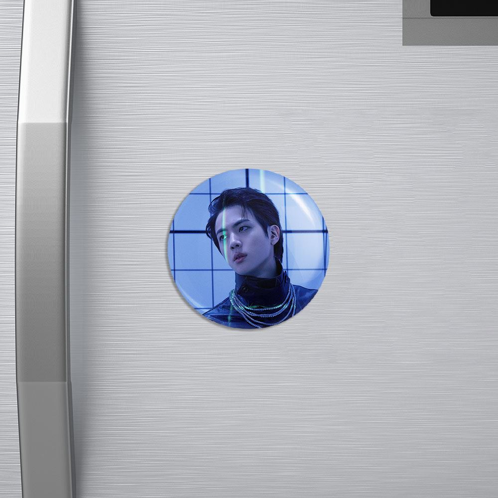 مگنت جین Jin گروه بی تی اس BTS خندالو با روکش سلفون مات مخملی ضدخش و قطعه پشتی فلزی تولید شده است که آهنربای اتمی بکار برده شده در محصول، بصورت مخفی تعبیه شده ودیده نمی شود. ضمن اینکه گیرایی بسیار بالایی داشته و به هیچ عنوان از روی یخچال نمی افتد.