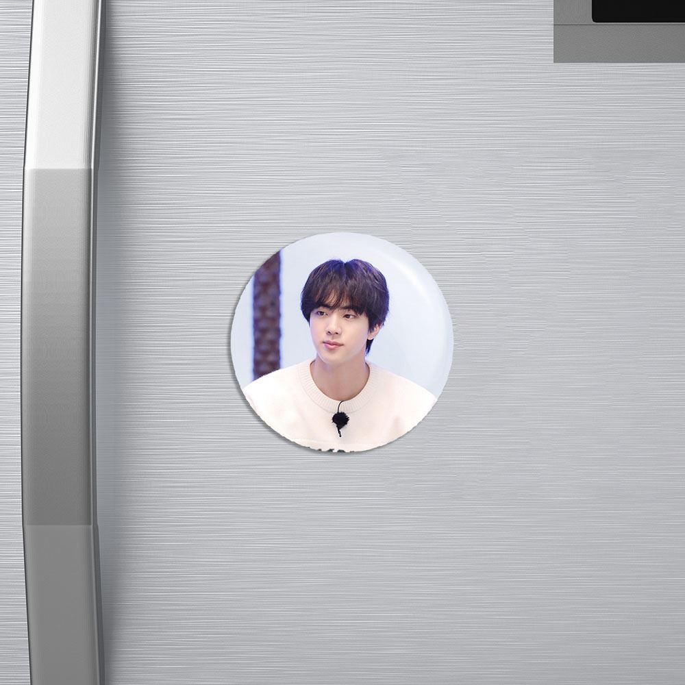 مگنت جین Jin گروه بی تی اس BTS خندالو با روکش سلفون مات مخملی ضدخش و قطعه پشتی فلزی تولید شده است که آهنربای اتمی بکار برده شده در محصول، بصورت مخفی تعبیه شده ودیده نمی شود. ضمن اینکه گیرایی بسیار بالایی داشته و به هیچ عنوان از روی یخچال نمی افتد.
