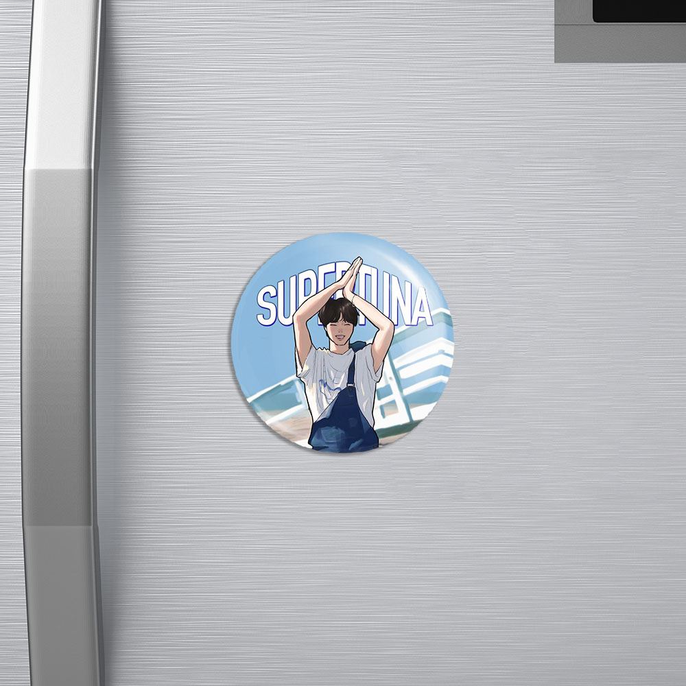 مگنت جین Jin گروه بی تی اس BTS خندالو با روکش سلفون مات مخملی ضدخش و قطعه پشتی فلزی تولید شده است که آهنربای اتمی بکار برده شده در محصول، بصورت مخفی تعبیه شده ودیده نمی شود. ضمن اینکه گیرایی بسیار بالایی داشته و به هیچ عنوان از روی یخچال نمی افتد.