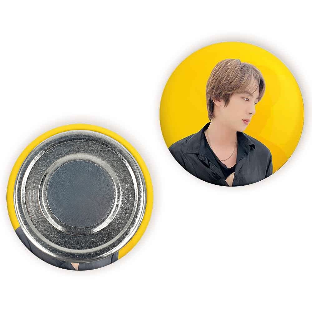 مگنت جین Jin گروه بی تی اس BTS خندالو با روکش سلفون مات مخملی ضدخش و قطعه پشتی فلزی تولید شده است که آهنربای اتمی بکار برده شده در محصول، بصورت مخفی تعبیه شده ودیده نمی شود. ضمن اینکه گیرایی بسیار بالایی داشته و به هیچ عنوان از روی یخچال نمی افتد.