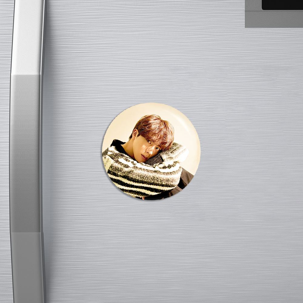 مگنت جین Jin گروه بی تی اس BTS خندالو با روکش سلفون مات مخملی ضدخش و قطعه پشتی فلزی تولید شده است که آهنربای اتمی بکار برده شده در محصول، بصورت مخفی تعبیه شده ودیده نمی شود. ضمن اینکه گیرایی بسیار بالایی داشته و به هیچ عنوان از روی یخچال نمی افتد.