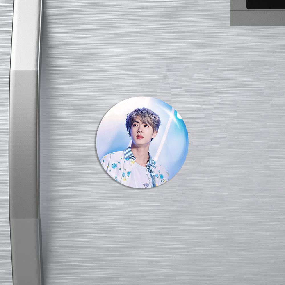 مگنت جین Jin گروه بی تی اس BTS خندالو با روکش سلفون مات مخملی ضدخش و قطعه پشتی فلزی تولید شده است که آهنربای اتمی بکار برده شده در محصول، بصورت مخفی تعبیه شده ودیده نمی شود. ضمن اینکه گیرایی بسیار بالایی داشته و به هیچ عنوان از روی یخچال نمی افتد.