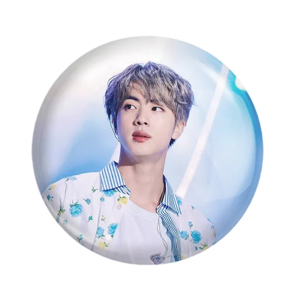 مگنت جین Jin گروه بی تی اس BTS خندالو با روکش سلفون مات مخملی ضدخش و قطعه پشتی فلزی تولید شده است که آهنربای اتمی بکار برده شده در محصول، بصورت مخفی تعبیه شده ودیده نمی شود. ضمن اینکه گیرایی بسیار بالایی داشته و به هیچ عنوان از روی یخچال نمی افتد.