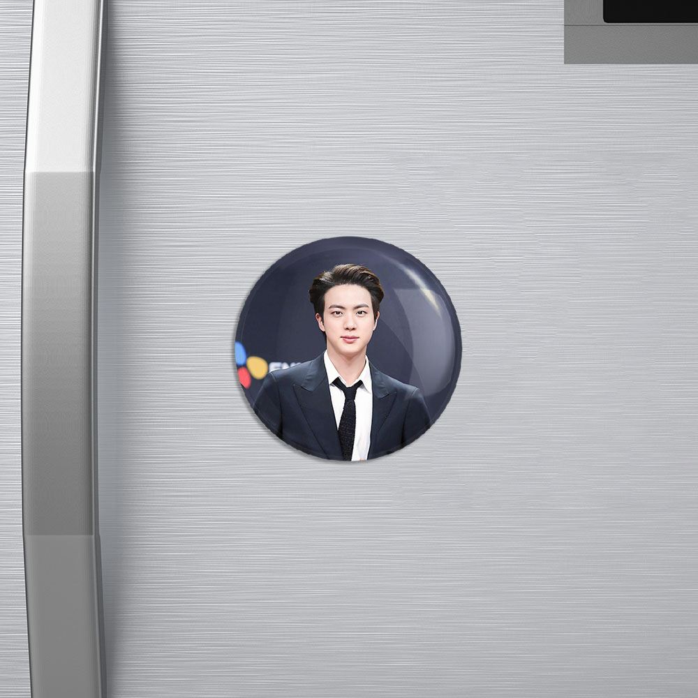 مگنت جین Jin گروه بی تی اس BTS خندالو با روکش سلفون مات مخملی ضدخش و قطعه پشتی فلزی تولید شده است که آهنربای اتمی بکار برده شده در محصول، بصورت مخفی تعبیه شده ودیده نمی شود. ضمن اینکه گیرایی بسیار بالایی داشته و به هیچ عنوان از روی یخچال نمی افتد.
