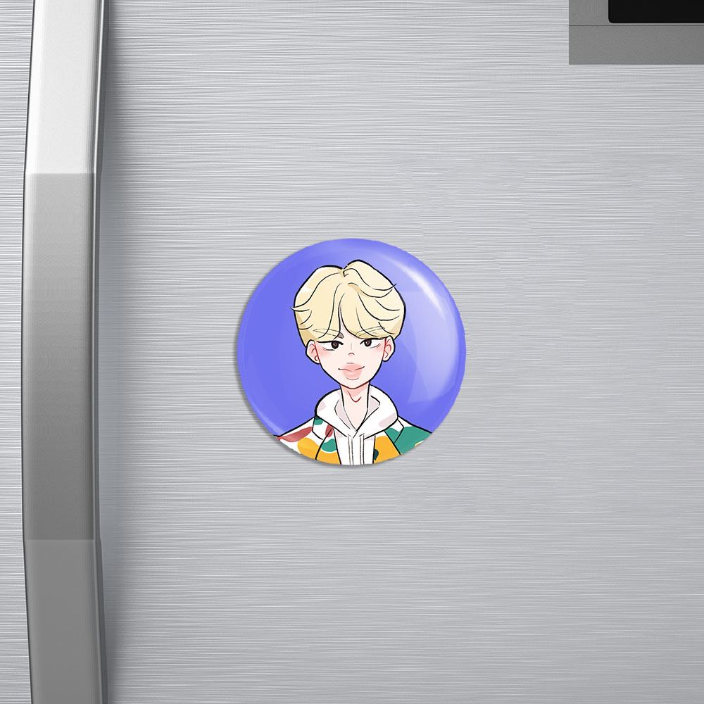 مگنت جین Jin گروه بی تی اس BTS خندالو با روکش سلفون مات مخملی ضدخش و قطعه پشتی فلزی تولید شده است که آهنربای اتمی بکار برده شده در محصول، بصورت مخفی تعبیه شده ودیده نمی شود. ضمن اینکه گیرایی بسیار بالایی داشته و به هیچ عنوان از روی یخچال نمی افتد.