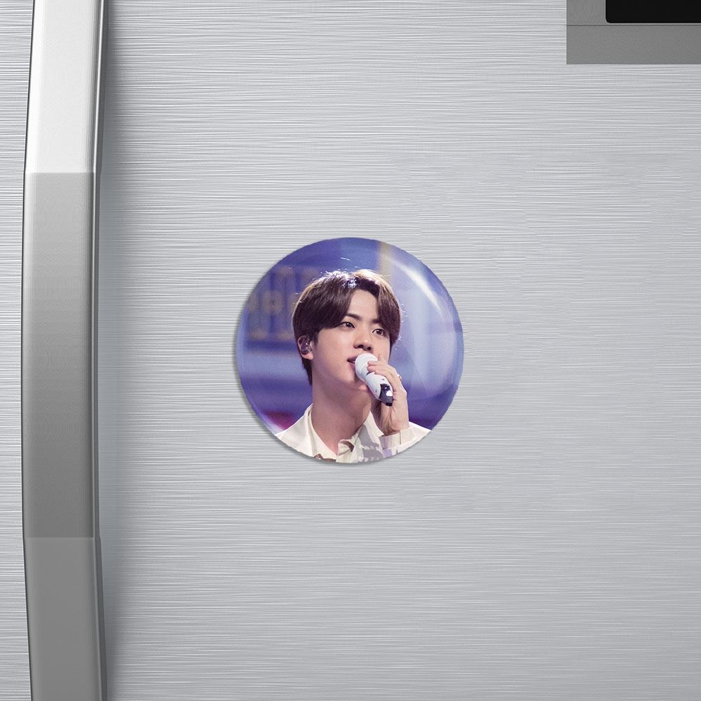 مگنت جین Jin گروه بی تی اس BTS خندالو با روکش سلفون مات مخملی ضدخش و قطعه پشتی فلزی تولید شده است که آهنربای اتمی بکار برده شده در محصول، بصورت مخفی تعبیه شده ودیده نمی شود. ضمن اینکه گیرایی بسیار بالایی داشته و به هیچ عنوان از روی یخچال نمی افتد.