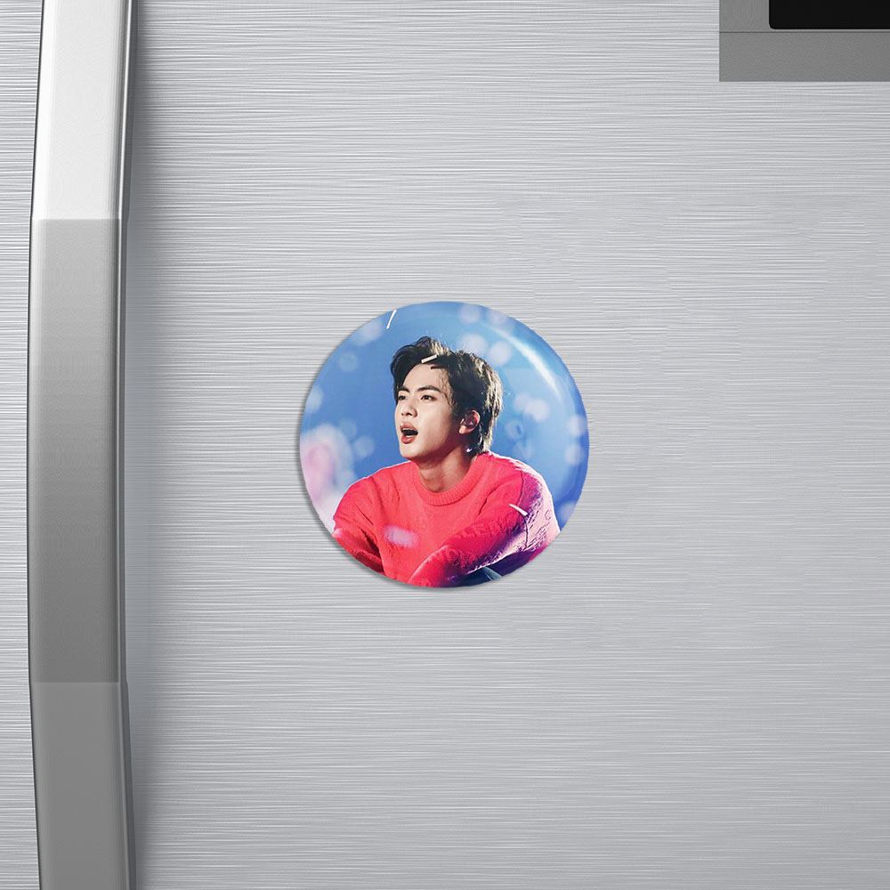 مگنت جین Jin گروه بی تی اس BTS خندالو با روکش سلفون مات مخملی ضدخش و قطعه پشتی فلزی تولید شده است که آهنربای اتمی بکار برده شده در محصول، بصورت مخفی تعبیه شده ودیده نمی شود. ضمن اینکه گیرایی بسیار بالایی داشته و به هیچ عنوان از روی یخچال نمی افتد.