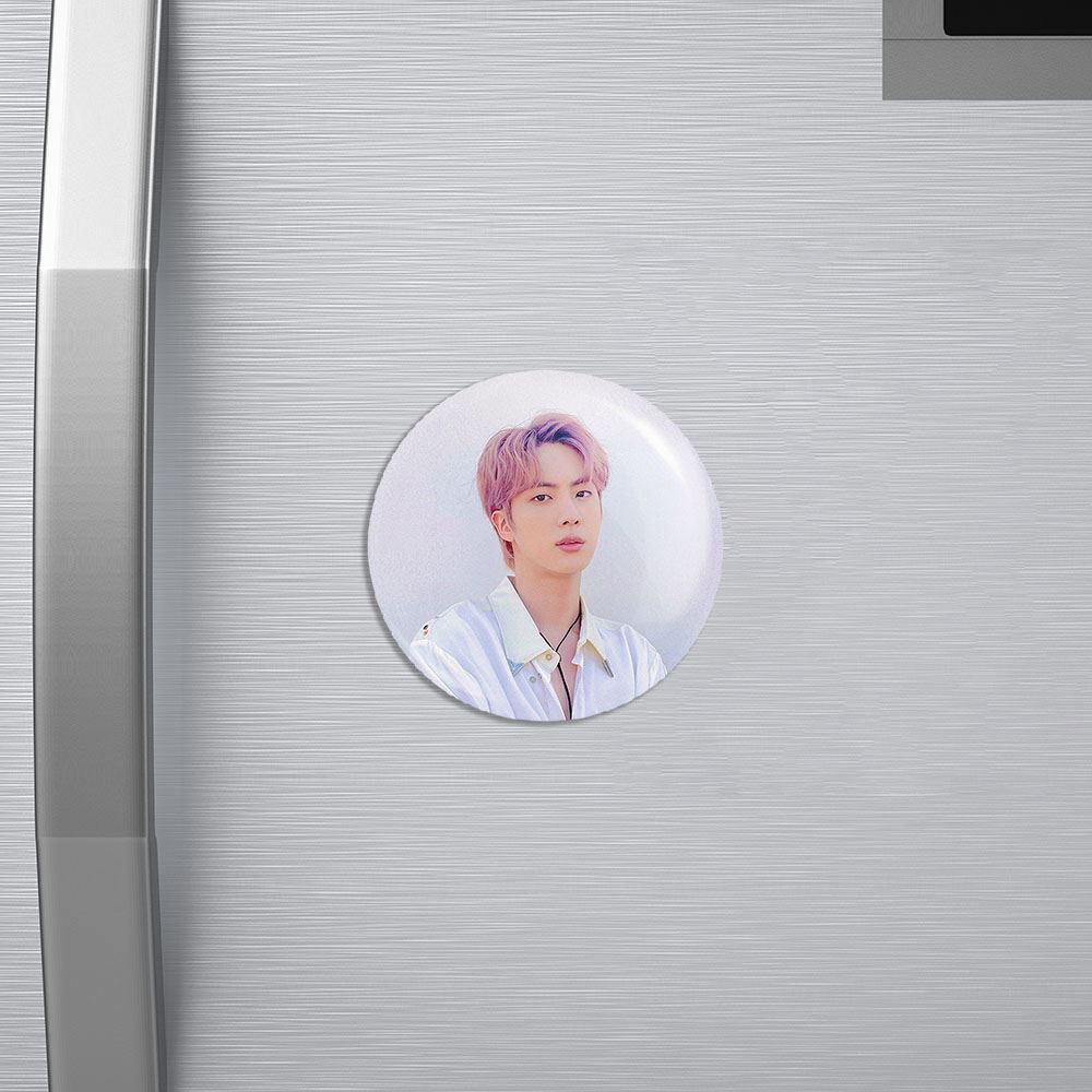 مگنت جین Jin گروه بی تی اس BTS خندالو با روکش سلفون مات مخملی ضدخش و قطعه پشتی فلزی تولید شده است که آهنربای اتمی بکار برده شده در محصول، بصورت مخفی تعبیه شده ودیده نمی شود. ضمن اینکه گیرایی بسیار بالایی داشته و به هیچ عنوان از روی یخچال نمی افتد.
