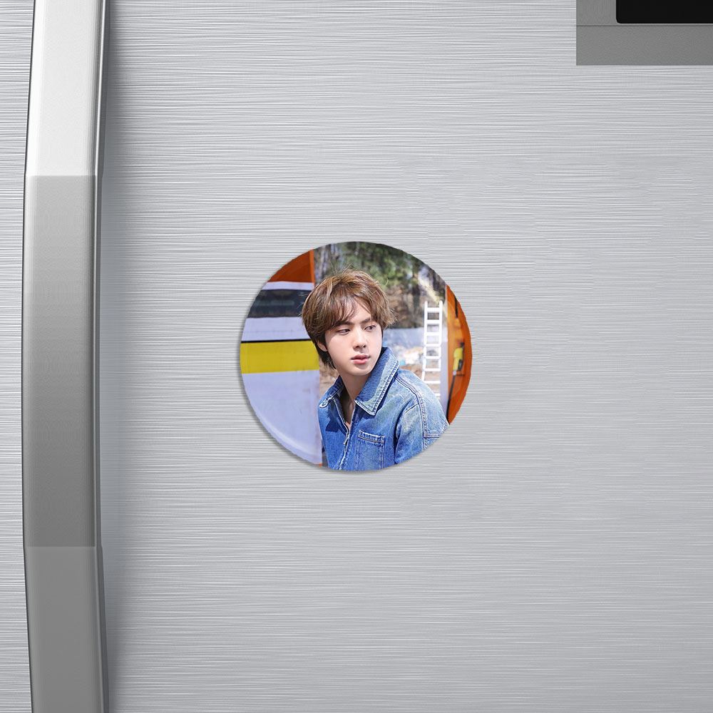 مگنت جین Jin گروه بی تی اس BTS خندالو با روکش سلفون مات مخملی ضدخش و قطعه پشتی فلزی تولید شده است که آهنربای اتمی بکار برده شده در محصول، بصورت مخفی تعبیه شده ودیده نمی شود. ضمن اینکه گیرایی بسیار بالایی داشته و به هیچ عنوان از روی یخچال نمی افتد.