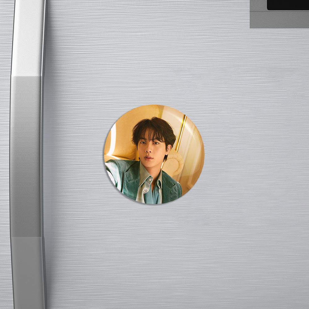 مگنت جین Jin گروه بی تی اس BTS خندالو با روکش سلفون مات مخملی ضدخش و قطعه پشتی فلزی تولید شده است که آهنربای اتمی بکار برده شده در محصول، بصورت مخفی تعبیه شده ودیده نمی شود. ضمن اینکه گیرایی بسیار بالایی داشته و به هیچ عنوان از روی یخچال نمی افتد.