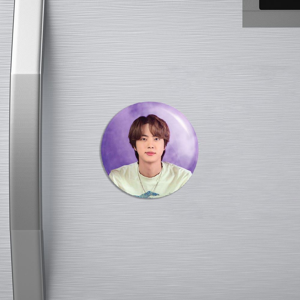 مگنت جین Jin گروه بی تی اس BTS خندالو با روکش سلفون مات مخملی ضدخش و قطعه پشتی فلزی تولید شده است که آهنربای اتمی بکار برده شده در محصول، بصورت مخفی تعبیه شده ودیده نمی شود. ضمن اینکه گیرایی بسیار بالایی داشته و به هیچ عنوان از روی یخچال نمی افتد.