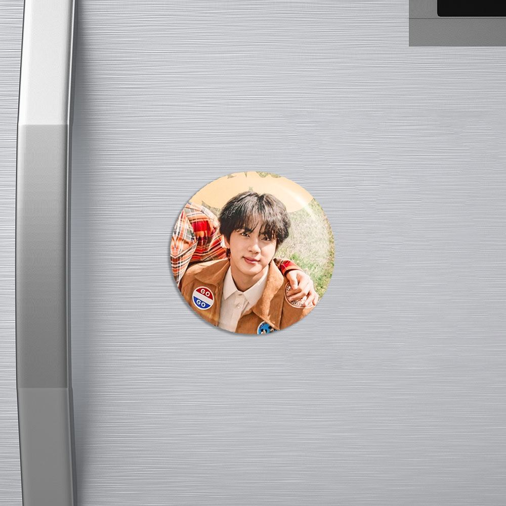 مگنت جین Jin گروه بی تی اس BTS خندالو با روکش سلفون مات مخملی ضدخش و قطعه پشتی فلزی تولید شده است که آهنربای اتمی بکار برده شده در محصول، بصورت مخفی تعبیه شده ودیده نمی شود. ضمن اینکه گیرایی بسیار بالایی داشته و به هیچ عنوان از روی یخچال نمی افتد.
