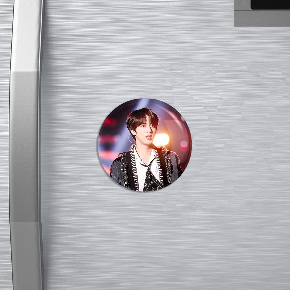 مگنت جین Jin گروه بی تی اس BTS خندالو با روکش سلفون مات مخملی ضدخش و قطعه پشتی فلزی تولید شده است که آهنربای اتمی بکار برده شده در محصول، بصورت مخفی تعبیه شده ودیده نمی شود. ضمن اینکه گیرایی بسیار بالایی داشته و به هیچ عنوان از روی یخچال نمی افتد.