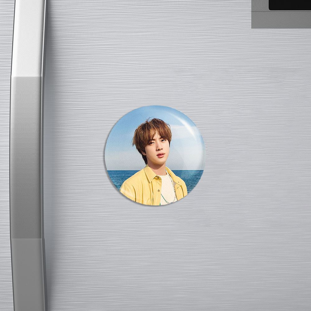 مگنت جین Jin گروه بی تی اس BTS خندالو با روکش سلفون مات مخملی ضدخش و قطعه پشتی فلزی تولید شده است که آهنربای اتمی بکار برده شده در محصول، بصورت مخفی تعبیه شده ودیده نمی شود. ضمن اینکه گیرایی بسیار بالایی داشته و به هیچ عنوان از روی یخچال نمی افتد.