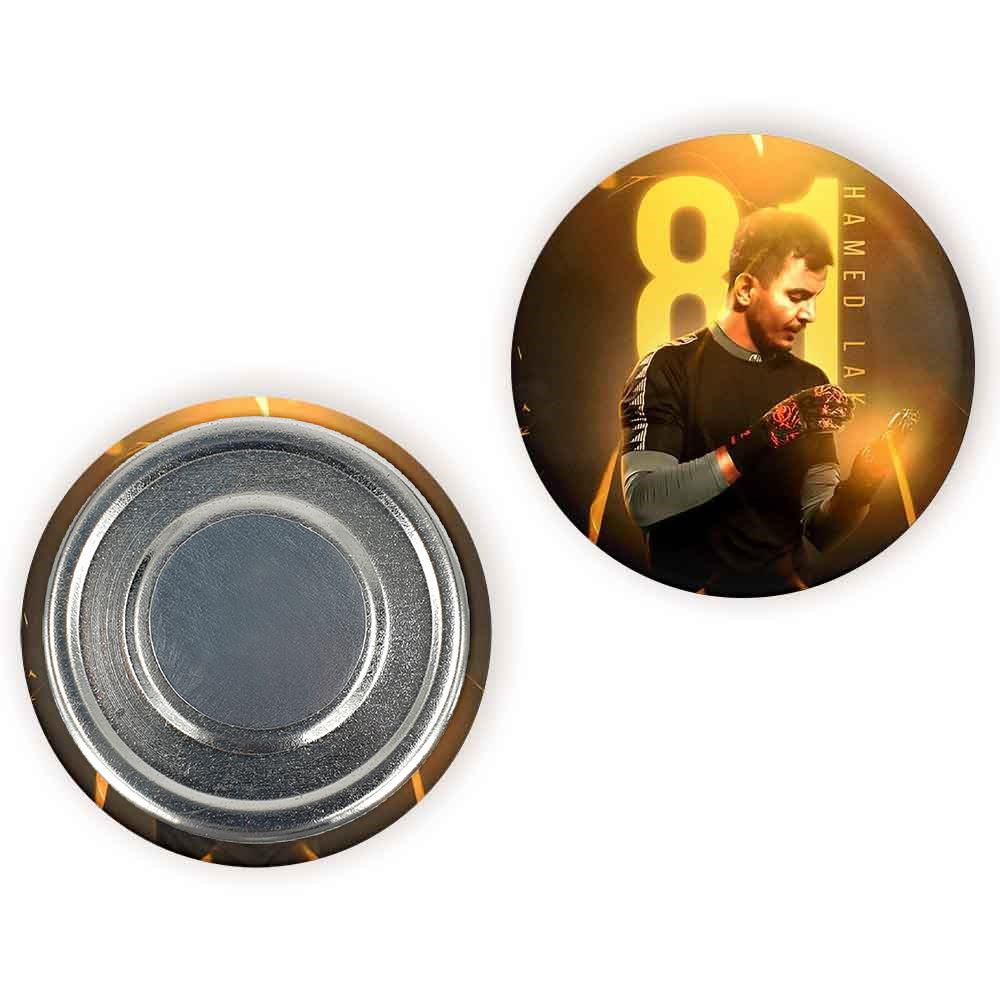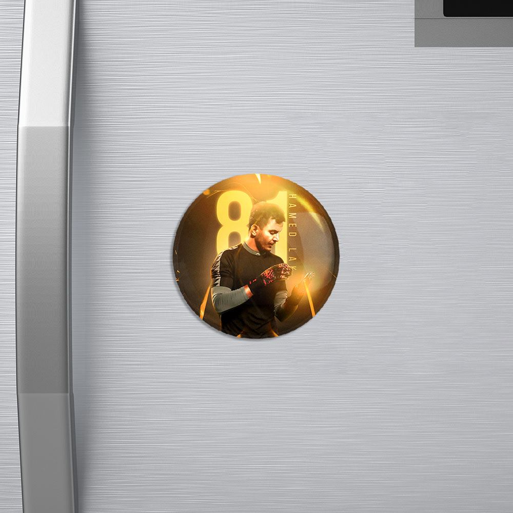 مگنت حامد لک پرسپولیس خندالو با روکش سلفون مات مخملی ضدخش و قطعه پشتی فلزی تولید شده است که آهنربای اتمی بکار برده شده در محصول، بصورت مخفی تعبیه شده ودیده نمی شود. ضمن اینکه گیرایی بسیار بالایی داشته و به هیچ عنوان از روی یخچال نمی افتد.