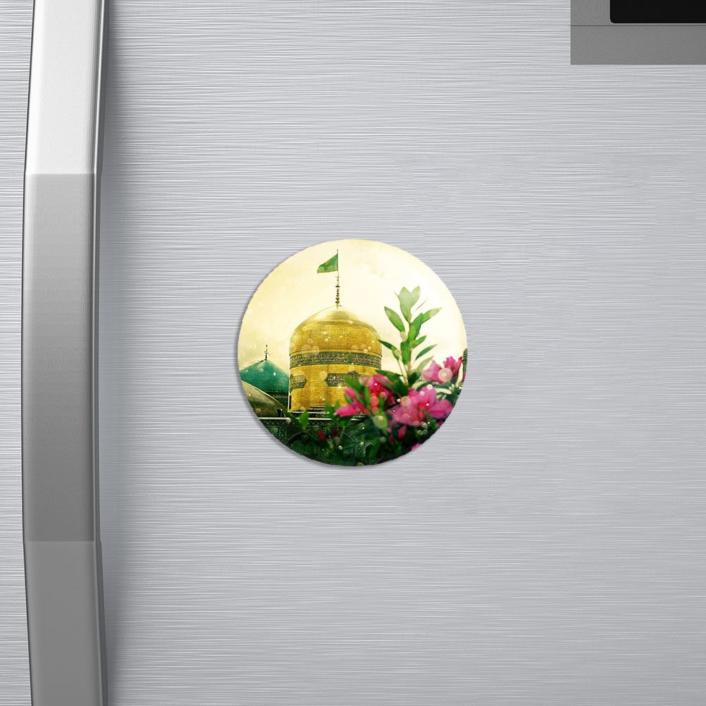 مگنت حرم امام رضا خندالو با روکش سلفون مات مخملی ضدخش و قطعه پشتی فلزی تولید شده است که آهنربای اتمی بکار برده شده در محصول، بصورت مخفی تعبیه شده ودیده نمی شود. ضمن اینکه گیرایی بسیار بالایی داشته و به هیچ عنوان از روی یخچال نمی افتد.