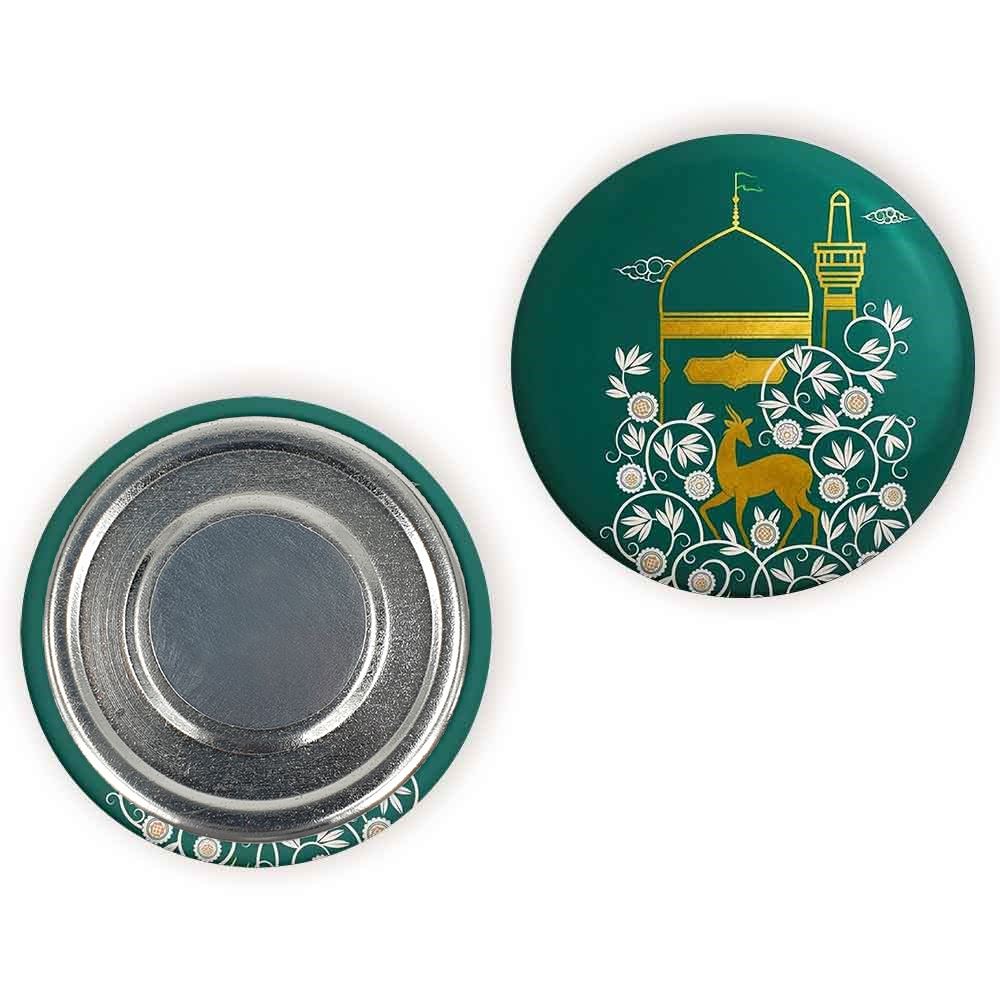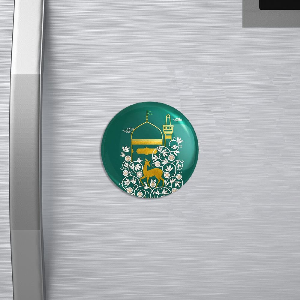 مگنت حرم امام رضا خندالو با روکش سلفون مات مخملی ضدخش و قطعه پشتی فلزی تولید شده است که آهنربای اتمی بکار برده شده در محصول، بصورت مخفی تعبیه شده ودیده نمی شود. ضمن اینکه گیرایی بسیار بالایی داشته و به هیچ عنوان از روی یخچال نمی افتد.
