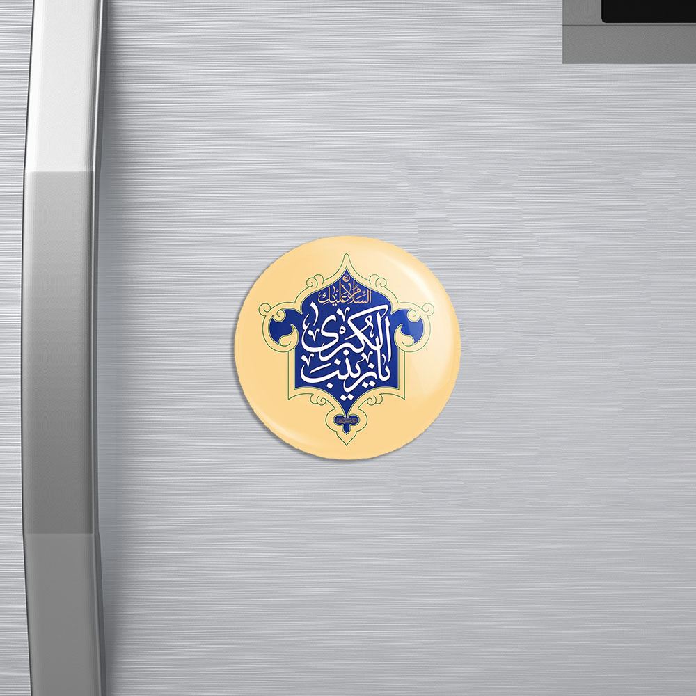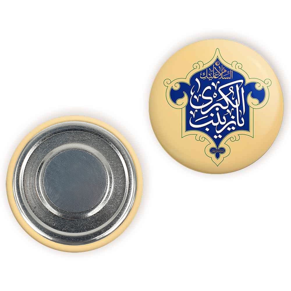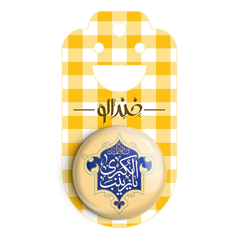 مگنت حضرت زینب خندالو با روکش سلفون مات مخملی ضدخش و قطعه پشتی فلزی تولید شده است که آهنربای اتمی بکار برده شده در محصول، بصورت مخفی تعبیه شده ودیده نمی شود. ضمن اینکه گیرایی بسیار بالایی داشته و به هیچ عنوان از روی یخچال نمی افتد.