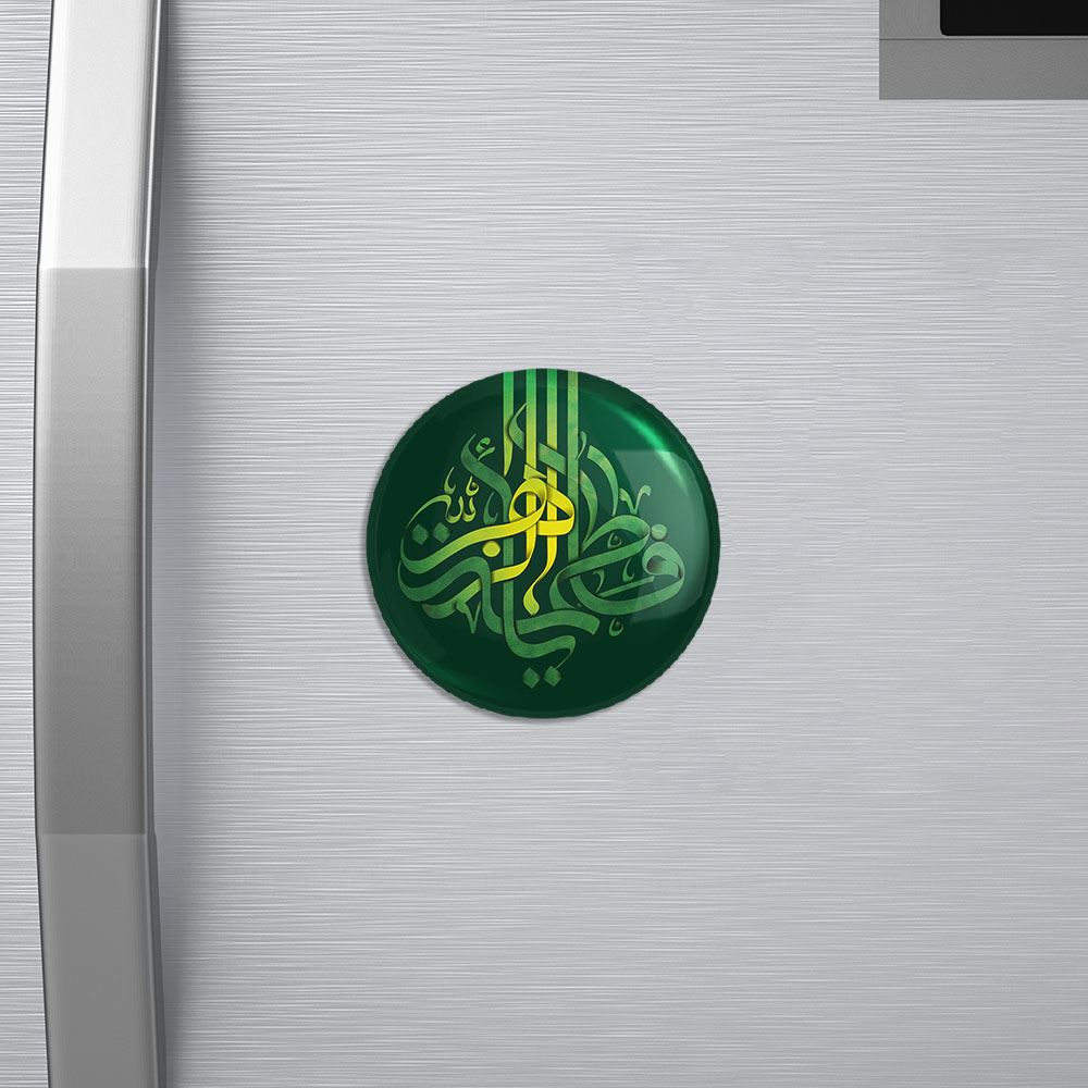 مگنت حضرت فاطمه خندالو با روکش سلفون مات مخملی ضدخش و قطعه پشتی فلزی تولید شده است که آهنربای اتمی بکار برده شده در محصول، بصورت مخفی تعبیه شده ودیده نمی شود. ضمن اینکه گیرایی بسیار بالایی داشته و به هیچ عنوان از روی یخچال نمی افتد.