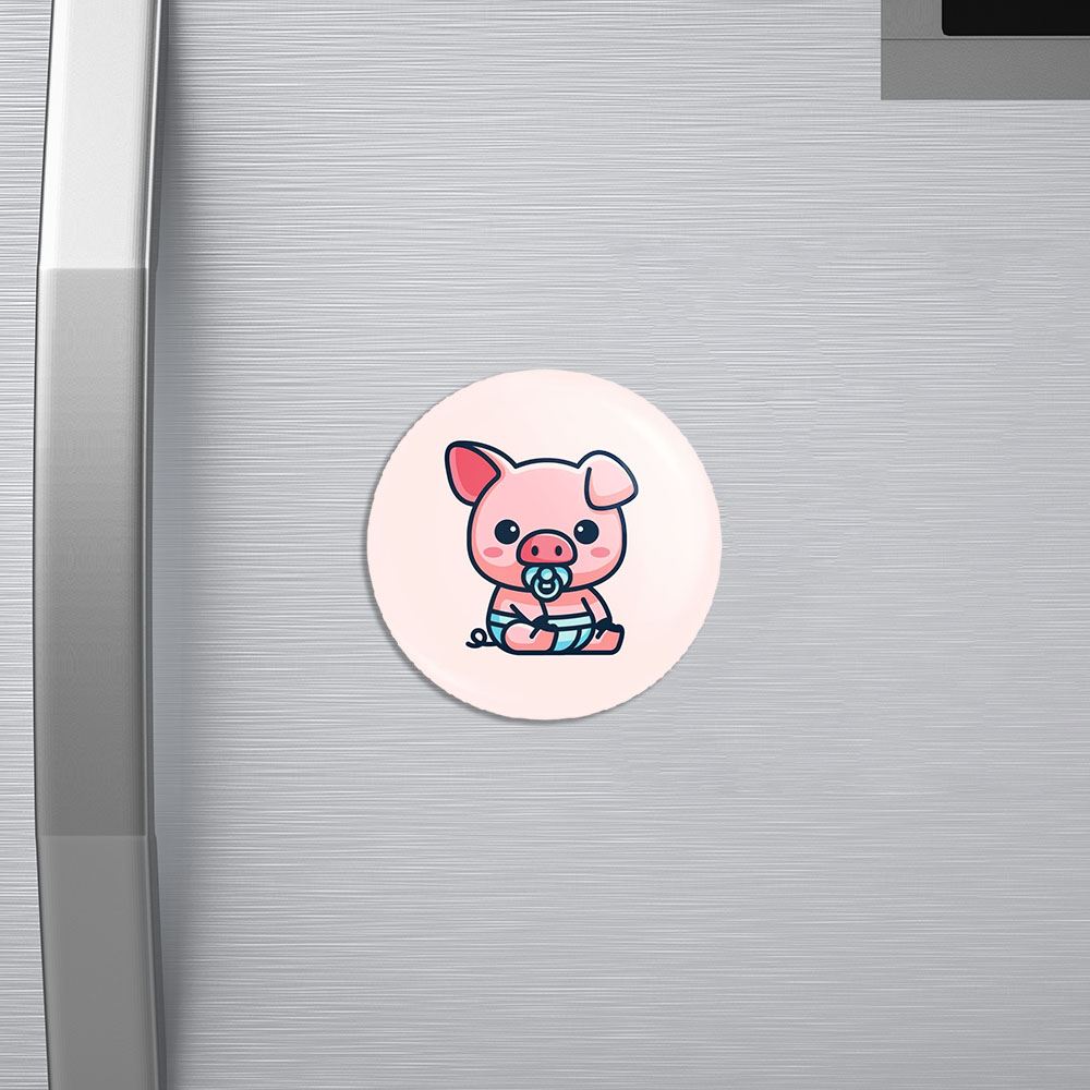 مگنت حیوانات بامزه خوک خندالو با روکش سلفون مات مخملی ضدخش و قطعه پشتی فلزی تولید شده است که آهنربای اتمی بکار برده شده در محصول، بصورت مخفی تعبیه شده ودیده نمی شود. ضمن اینکه گیرایی بسیار بالایی داشته و به هیچ عنوان از روی یخچال نمی افتد.