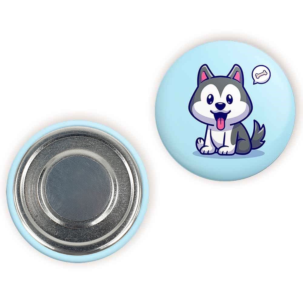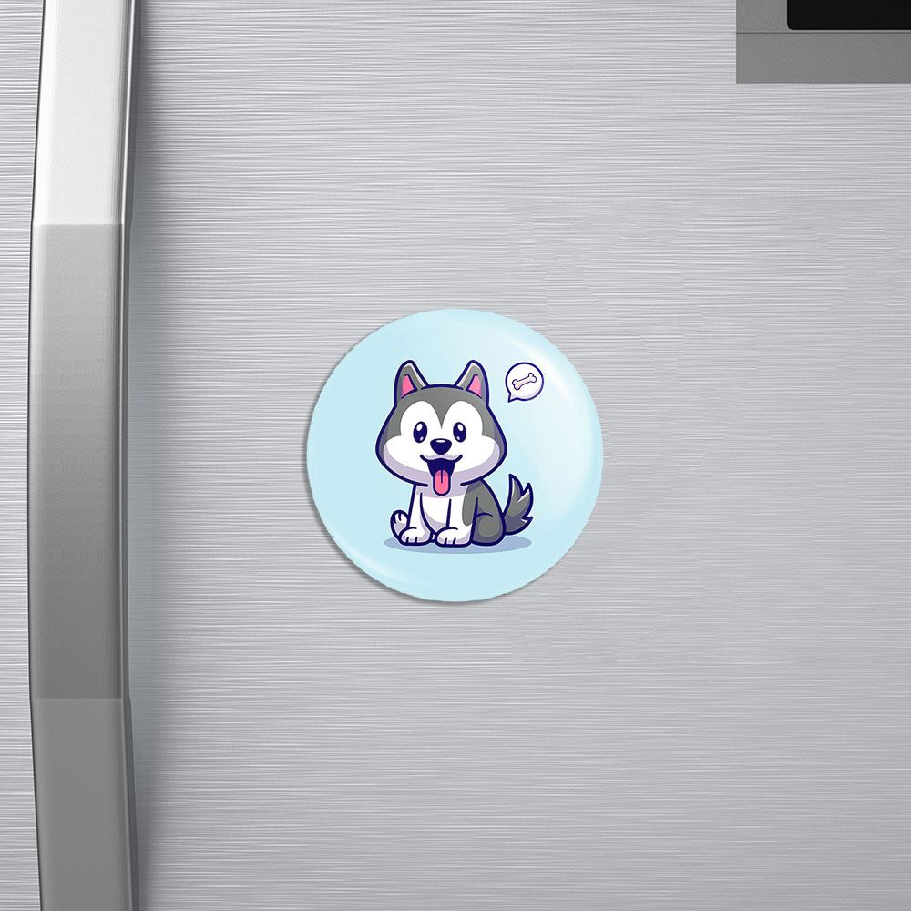 مگنت حیوانات بامزه سگ هاسکی خندالو با روکش سلفون مات مخملی ضدخش و قطعه پشتی فلزی تولید شده است که آهنربای اتمی بکار برده شده در محصول، بصورت مخفی تعبیه شده ودیده نمی شود. ضمن اینکه گیرایی بسیار بالایی داشته و به هیچ عنوان از روی یخچال نمی افتد.