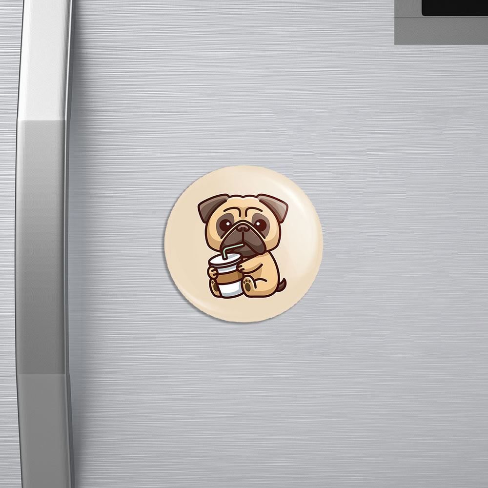 مگنت حیوانات بامزه سگ خندالو با روکش سلفون مات مخملی ضدخش و قطعه پشتی فلزی تولید شده است که آهنربای اتمی بکار برده شده در محصول، بصورت مخفی تعبیه شده ودیده نمی شود. ضمن اینکه گیرایی بسیار بالایی داشته و به هیچ عنوان از روی یخچال نمی افتد.