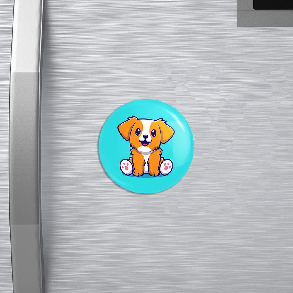 مگنت حیوانات بامزه سگ خندالو با روکش سلفون مات مخملی ضدخش و قطعه پشتی فلزی تولید شده است که آهنربای اتمی بکار برده شده در محصول، بصورت مخفی تعبیه شده ودیده نمی شود. ضمن اینکه گیرایی بسیار بالایی داشته و به هیچ عنوان از روی یخچال نمی افتد.