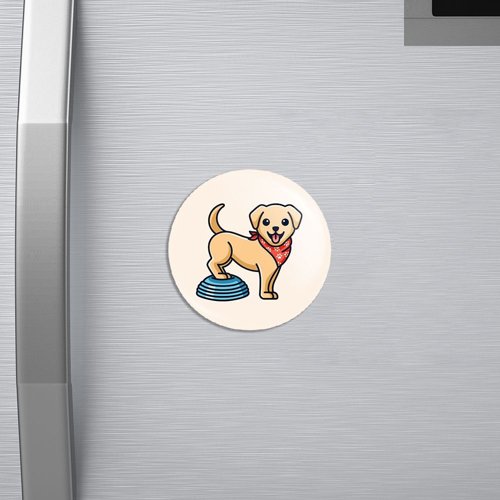 مگنت حیوانات بامزه سگ خندالو با روکش سلفون مات مخملی ضدخش و قطعه پشتی فلزی تولید شده است که آهنربای اتمی بکار برده شده در محصول، بصورت مخفی تعبیه شده ودیده نمی شود. ضمن اینکه گیرایی بسیار بالایی داشته و به هیچ عنوان از روی یخچال نمی افتد.