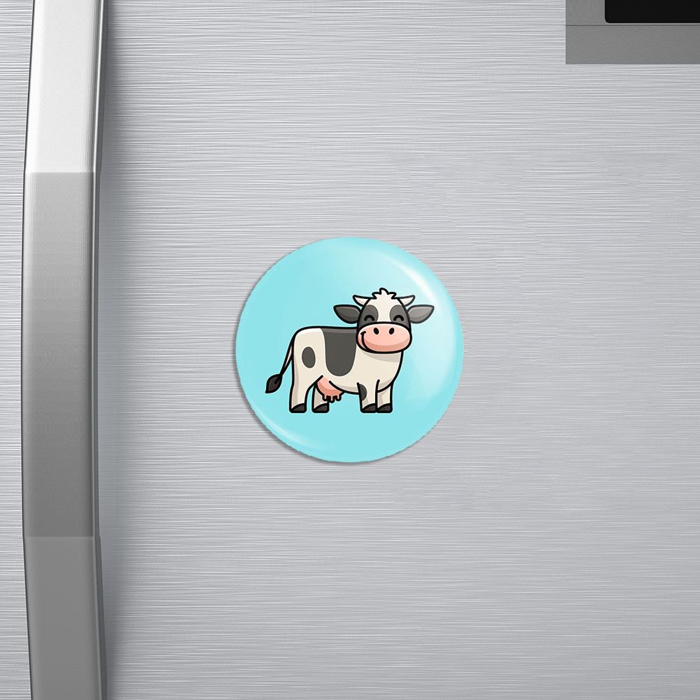 مگنت حیوانات بامزه گاو خندالو با روکش سلفون مات مخملی ضدخش و قطعه پشتی فلزی تولید شده است که آهنربای اتمی بکار برده شده در محصول، بصورت مخفی تعبیه شده ودیده نمی شود. ضمن اینکه گیرایی بسیار بالایی داشته و به هیچ عنوان از روی یخچال نمی افتد.