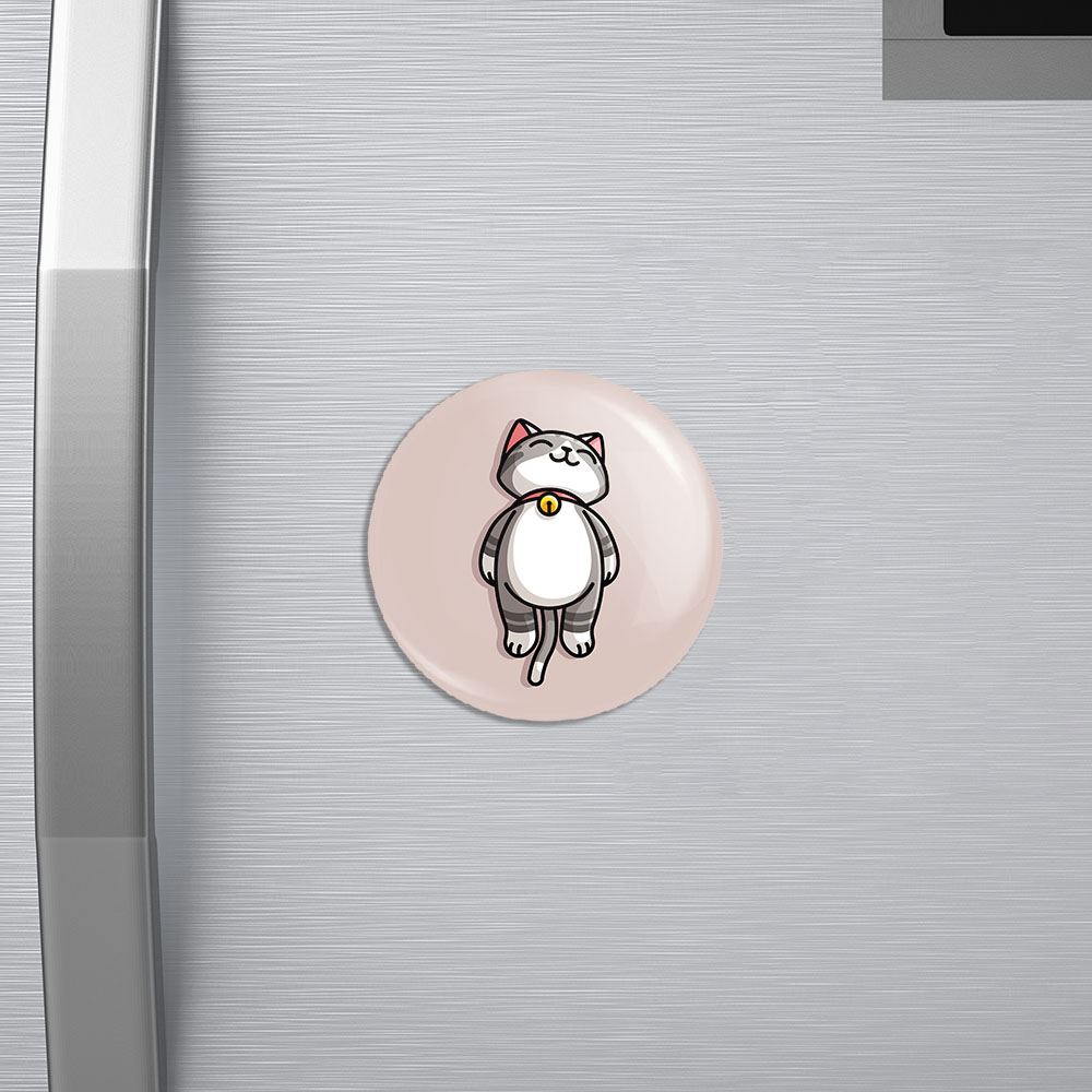 مگنت حیوانات بامزه گربه خندالو با روکش سلفون مات مخملی ضدخش و قطعه پشتی فلزی تولید شده است که آهنربای اتمی بکار برده شده در محصول، بصورت مخفی تعبیه شده ودیده نمی شود. ضمن اینکه گیرایی بسیار بالایی داشته و به هیچ عنوان از روی یخچال نمی افتد.
