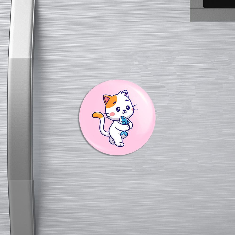 مگنت حیوانات بامزه گربه خندالو با روکش سلفون مات مخملی ضدخش و قطعه پشتی فلزی تولید شده است که آهنربای اتمی بکار برده شده در محصول، بصورت مخفی تعبیه شده ودیده نمی شود. ضمن اینکه گیرایی بسیار بالایی داشته و به هیچ عنوان از روی یخچال نمی افتد.