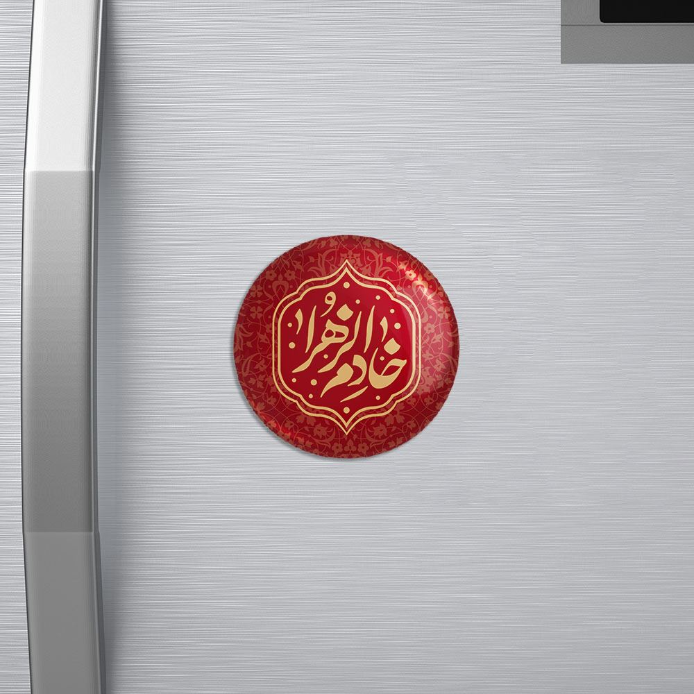 مگنت خادم الزهرا خندالو با روکش سلفون مات مخملی ضدخش و قطعه پشتی فلزی تولید شده است که آهنربای اتمی بکار برده شده در محصول، بصورت مخفی تعبیه شده ودیده نمی شود. ضمن اینکه گیرایی بسیار بالایی داشته و به هیچ عنوان از روی یخچال نمی افتد.