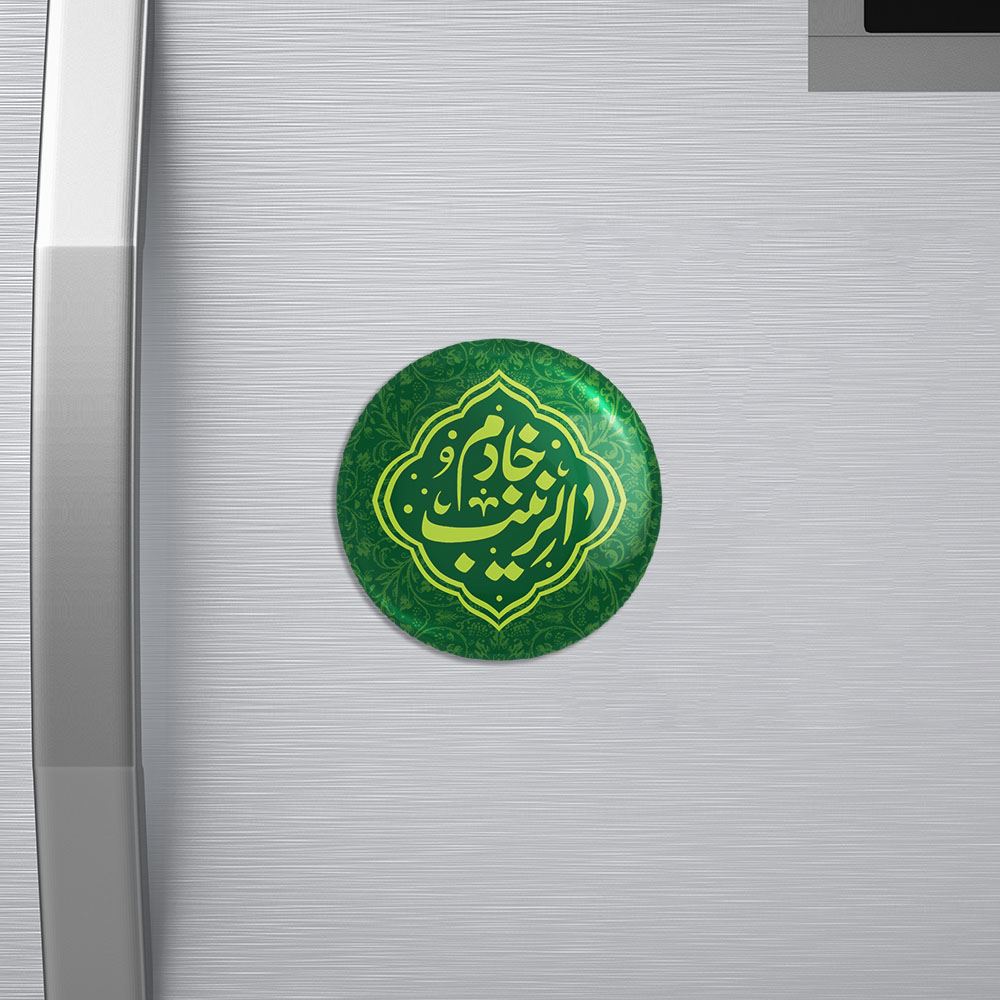 مگنت خادم الزینب خندالو با روکش سلفون مات مخملی ضدخش و قطعه پشتی فلزی تولید شده است که آهنربای اتمی بکار برده شده در محصول، بصورت مخفی تعبیه شده ودیده نمی شود. ضمن اینکه گیرایی بسیار بالایی داشته و به هیچ عنوان از روی یخچال نمی افتد. نکته مهم این است که به دلیل مخفی بودن آهنربا، هیچگونه خط و خش و زدگی بر روی یخچال ایجاد نخواهد شد. چاپ مگنت یخچال خادم الزینب نیز با دستگاه های استاندارد و با بهترین سطح کیفیت صورت گرفته و طرح با شفافیتی مثال زدنی و با سلفون چسبی تولید شده است که باعث شده محصول نهایی بدون شکست نور دیده شود. همچنین بسته بندی جذاب و مینیمال مگنت های یخچالی، آنها را مناسب هدیه کرده است. مگنت خادم الزینب خندالو علاوه بر روی یخچال بر هر سطح فلزی دیگری مثل لولای در اتاق، کمد های آهنی و … نیز قابل نصب است.